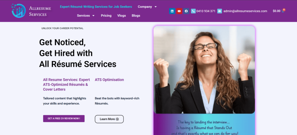CV People Australia’s unique selling point is its focus on creating highly tailored resumes for over 65 industries and 920 professions. Their offerings include resume writing, cover letters, and STAR method responses.
