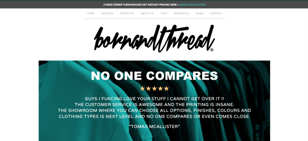 “Having used other screen printers before, the customer service, quality and professionalism of Born and Thread blew us away. The team were quick to respond to our initial email with a quote and mock up for approval and quoted completion times were spot on for our large order of Motorsport apparel. We are very happy with the quality of the prints received. The whole process was easy from start to finish and we would definitely recommend them if you need anything screen printed.”